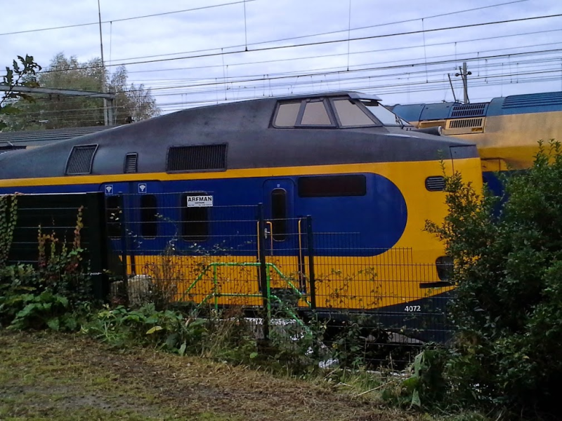De machinist kan de trein aan de rechterzijde verlaten. Er is daar een buitendeur. Wil hij de trein aan de linkerzijde verlaten, dan moet hij via het balkon lopen.